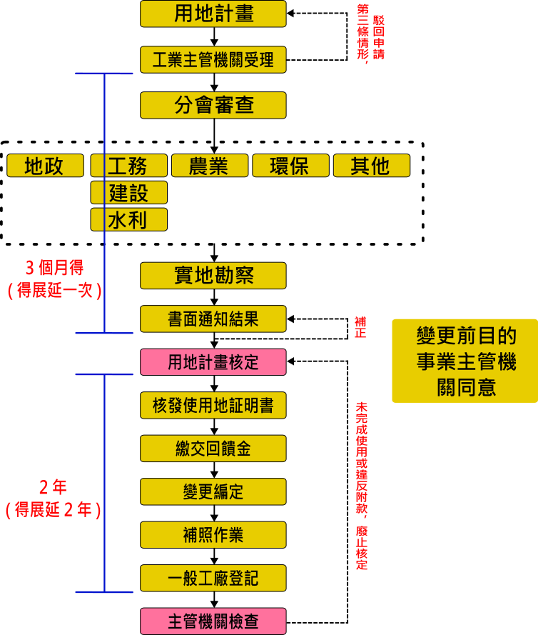 - 申請年限自取得特定工廠核准,最晚至 121/3/19 提出用地計畫